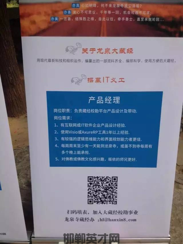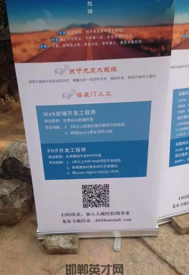 但像這種招聘Web前端開發(fā)工程師、PHP開發(fā)工程師和產(chǎn)品經(jīng)理的寺院,恐怕只有龍泉寺一個吧。